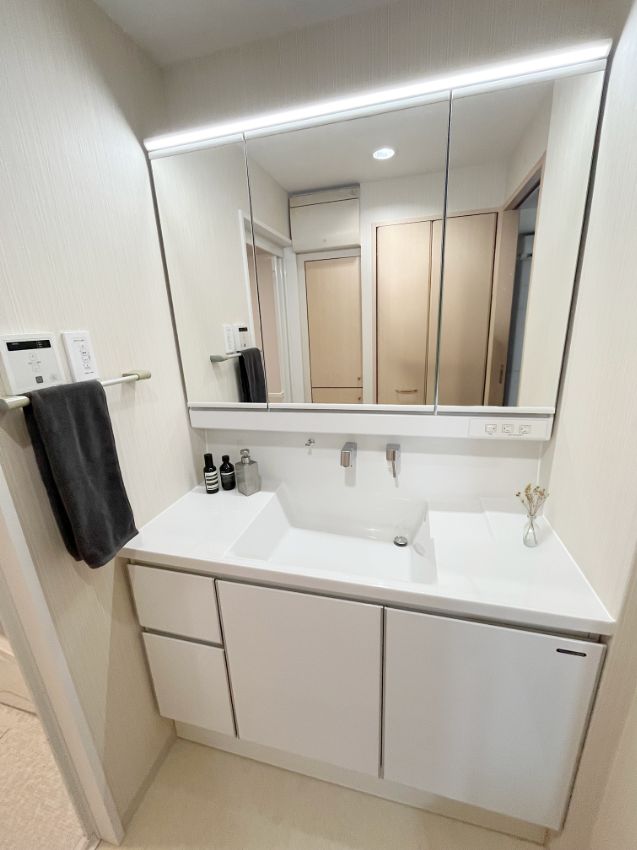 「ドライエリア」と「ウェットエリア」で使い分けでき、使い勝手の良い洗面台です。