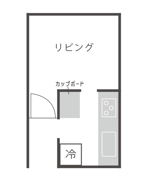 アクセントのグレージュや、キッチン内はキッチンがグレーなので敢えて木目にすることでバランスよくまとまりました。