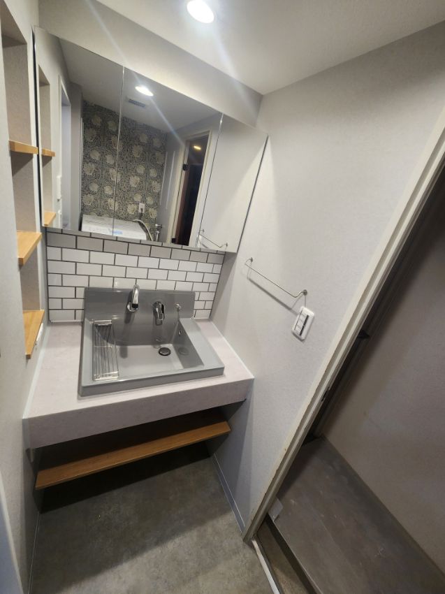 この度は弊社をご利用いただきありがとうございました。 お選びいただいた仕様とタイルがマッチして素敵な洗面空間になりましたね。 お喜びいただき大変嬉しいです。 今後もお困りの事がございましたらお気軽にご相談ください。