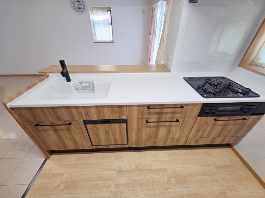 木目が美しいおしゃれなキッチンが完成しました。