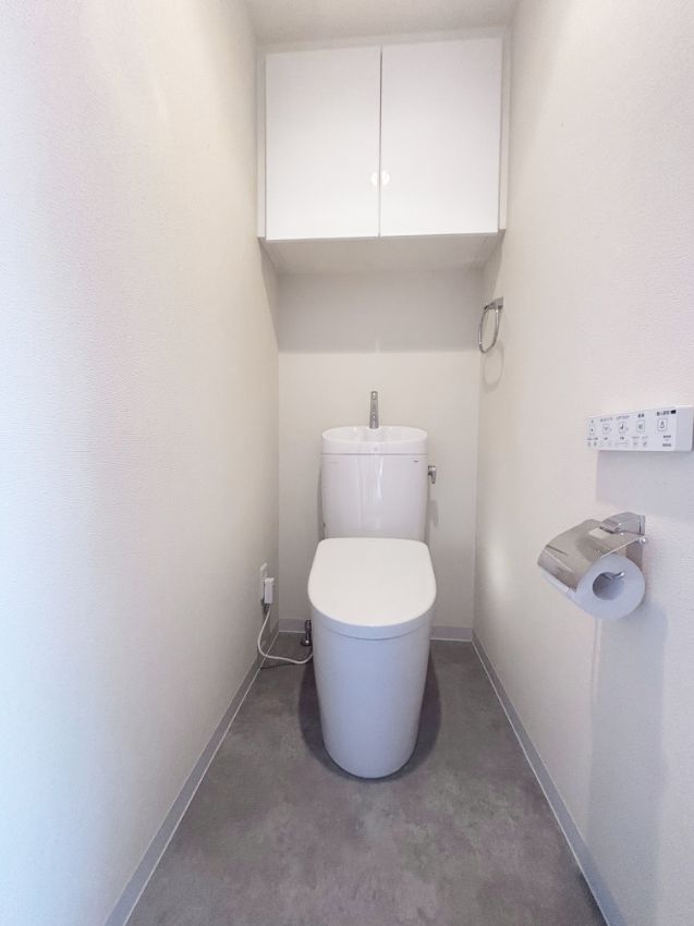 モルタル柄の床がオシャレなトイレ空間が完成しました。