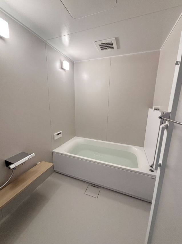 最後にお水、お湯が問題なく出るかテストを行い、浴室の施工完了となります。