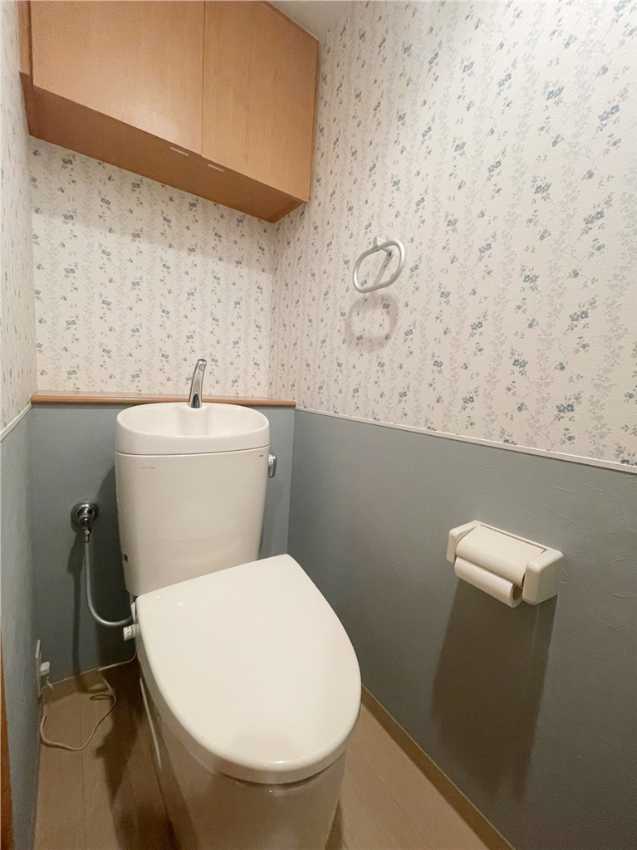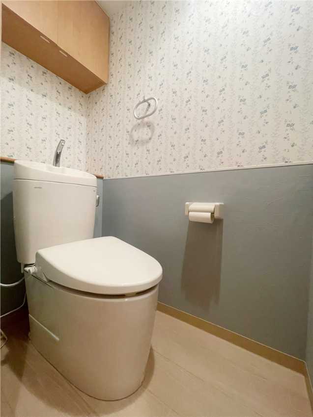 クロスを上下で張り分け、オシャレなトイレ空間に。