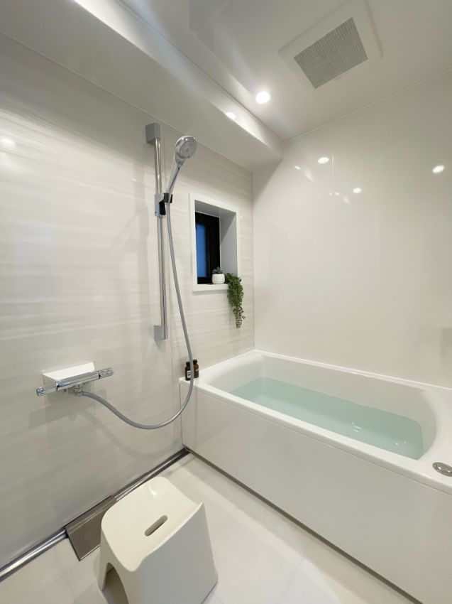 最後にお水、お湯が問題なく出るかテストを行い、浴室の施工完了となります。