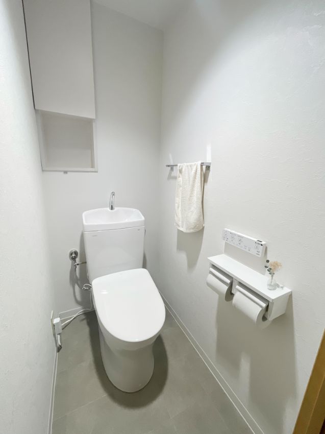 空間全体をホワイトでまとめ、清潔感のあるスッキリとしたトイレ空間が完成しました。