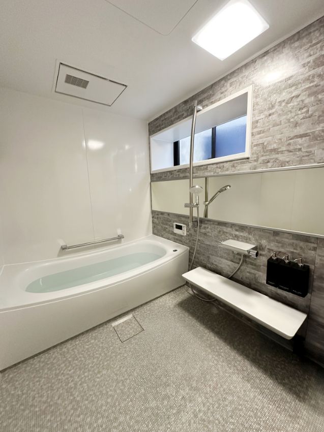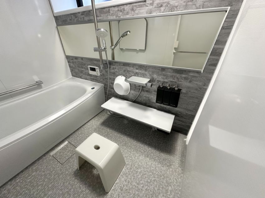 アクセントに採用したクレアライトグレーがオシャレな印象の浴室へレベルアップしてくれています。