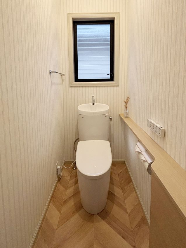 ヘリンボーンがかわいらしいトイレ空間が完成しました。