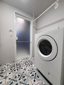 脱衣所の内装をやるなら、ゆくゆく浴室を変えるときにお風呂の面の壁紙も絡みが出てくることから交換に至りました。