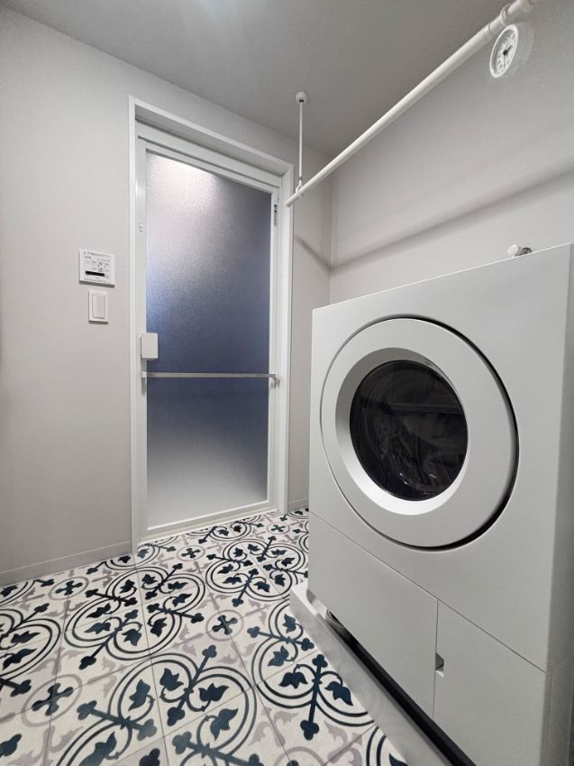 脱衣所の内装工事をきっかけに、将来的にお風呂を交換する際に壁紙の取り合いが生じることを考慮し、