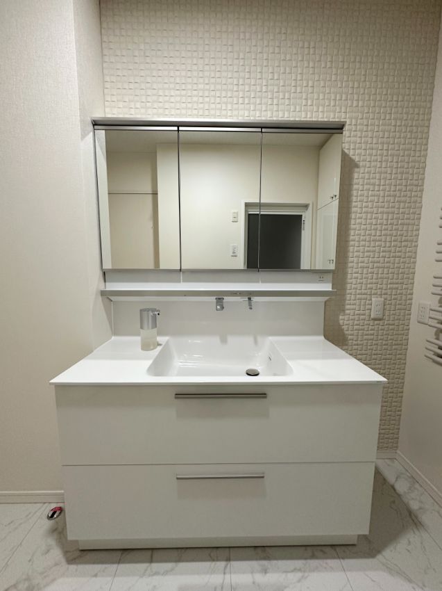 すっきりとした見た目ながら、収納力の高い洗面台が完成しました。​