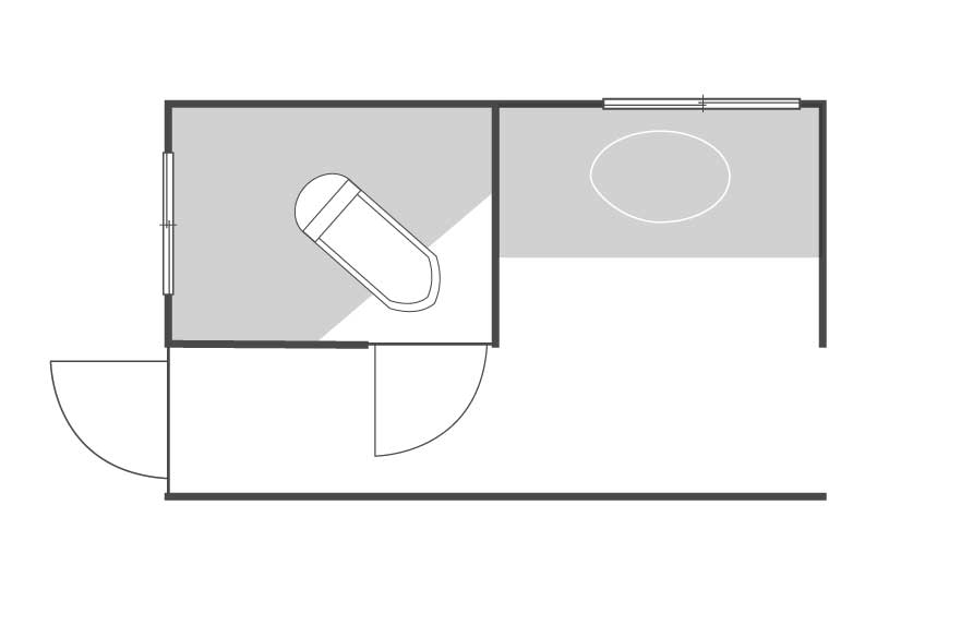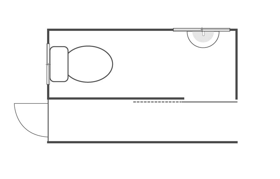 壁を撤去して隣の空間と一体化することで、トイレのスペースを広く確保できるようにしました。