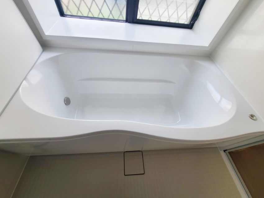 最後にお水、お湯が問題なく出るかテストを行い、浴室の施工完了となります。