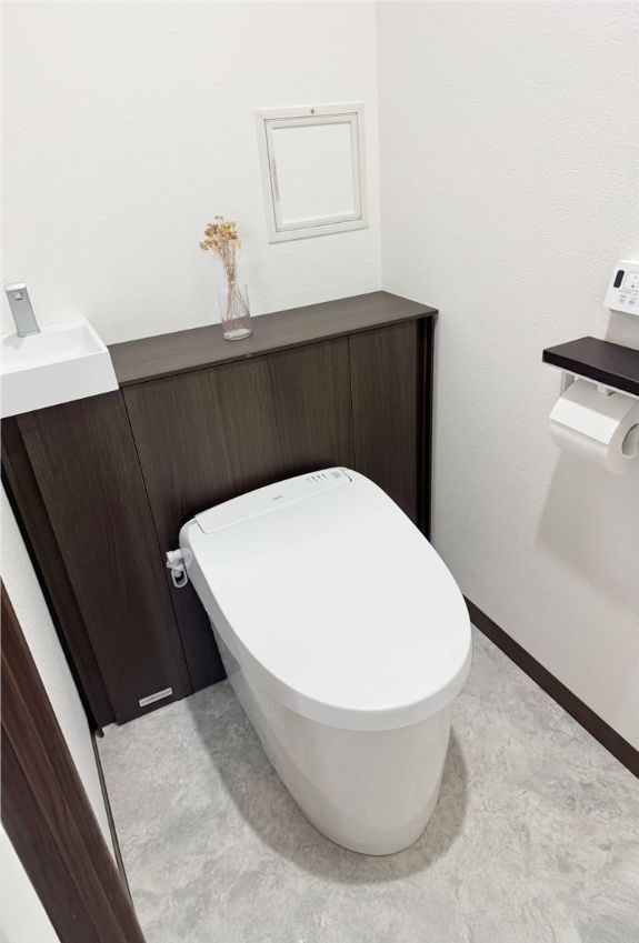キャビネット付きで、収納力も見た目もスッキリとしたトイレが完成しました。