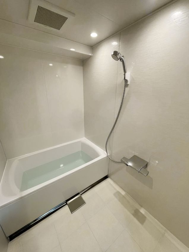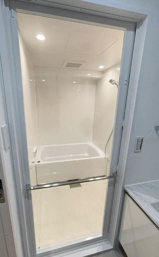 最後にお水、お湯が問題なく出るかテストを行い、浴室の施工完了となります。