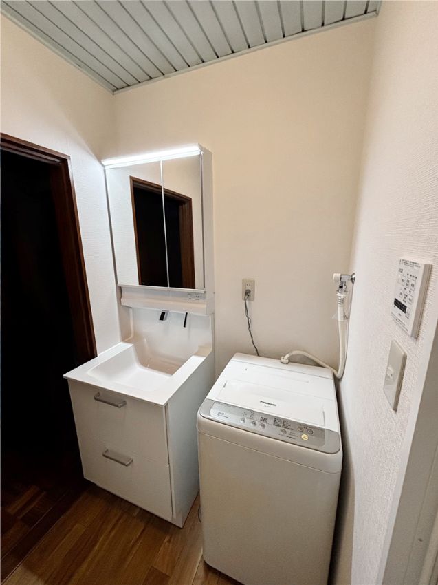 また、使いやすいように洗面台と洗濯機の位置を変えていきます。