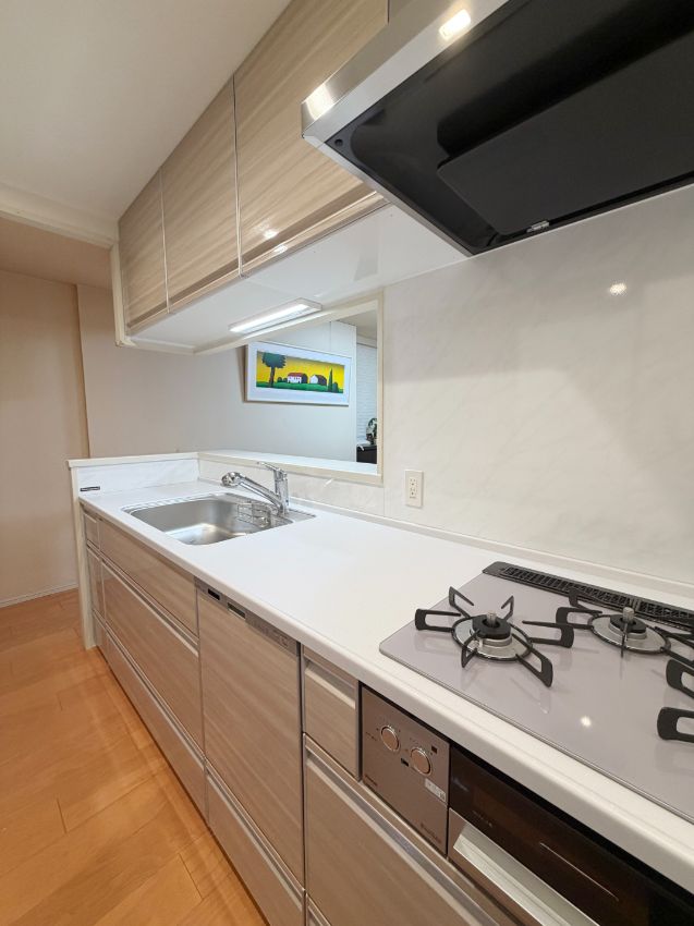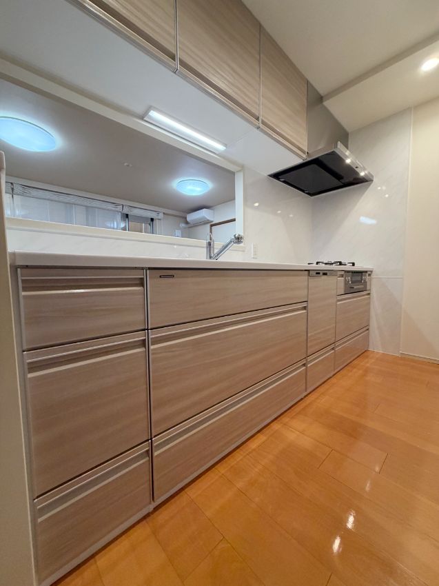 幅2550mm以上のキッチンに、ディスポーザーの再利用・食洗機の新設など、様々な工夫をして施工しました。