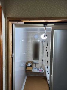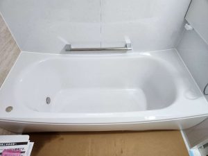 最後にお水、お湯が問題なく出るかテストを行い、浴室の施工完了となります。