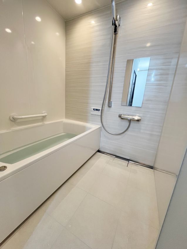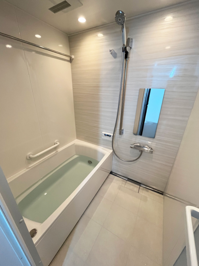 最後にお水、お湯が問題なく出るかテストを行い、浴室の施工完了となります。