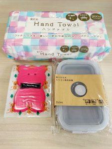 折り畳み保存容器・スポンジ・ハンドタオルプレゼント!