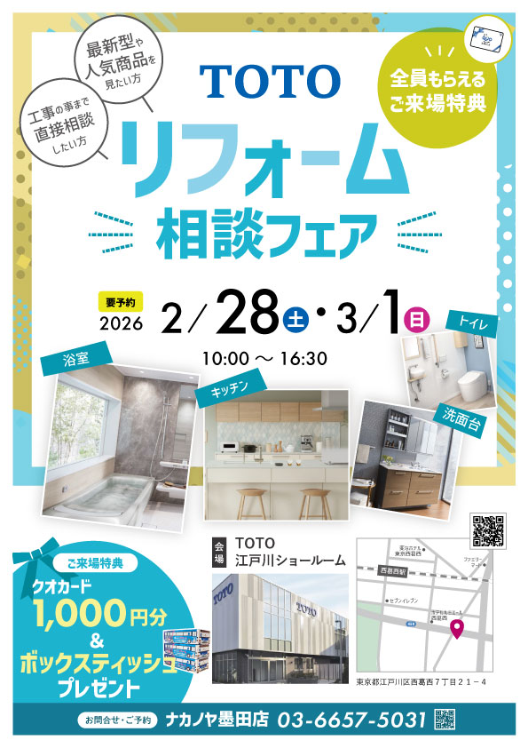 【墨田店】2/28(土)・3/1(日)【TOTO江戸川ショールーム】にてリフォームフェア開催!