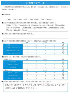 工事に関してのご感想、営業・職人の印象などもアンケート形式でお答えいただきました。