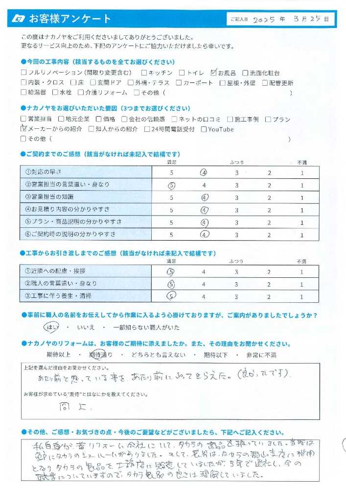 あたり前と思っている事をあたり前にやってもらえた。(良かったです)