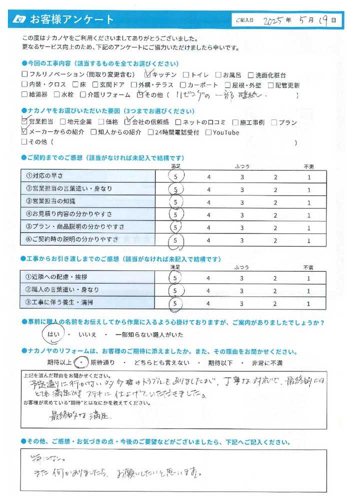予定通りに行かない多少のトラブルもありましたが、丁寧な対応で、最終的にはとても満足できステキに仕上げていただきました。