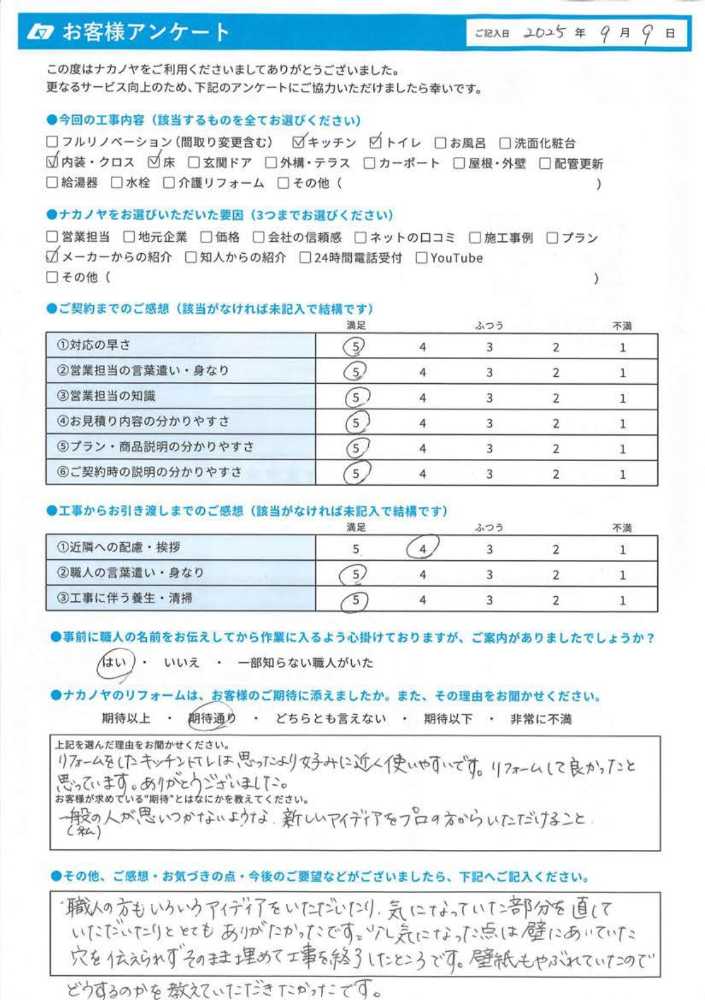 リフォームしたキッチン・トイレは思ったより好みに近く使いやすいです。