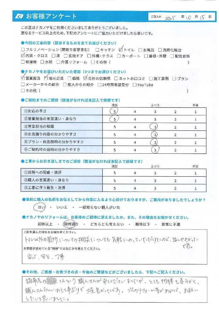 【お客様アンケート】職人さんらしいお仕事ぶりで
