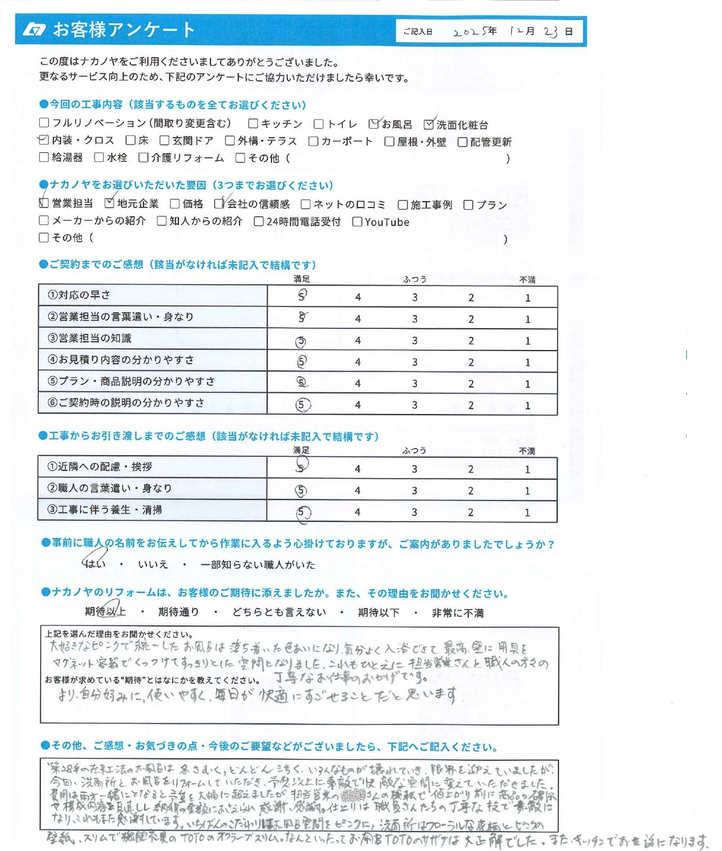 お客様のアンケートの内容をご紹介しました。